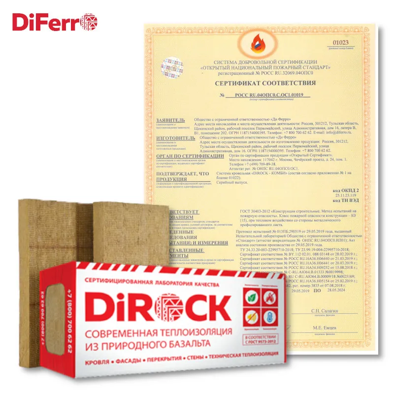 • Ди Ферро получила сертификат, подтверждающий класс пожарной опасности К0(15) для кровельных систем DiROCK-КОМБИ