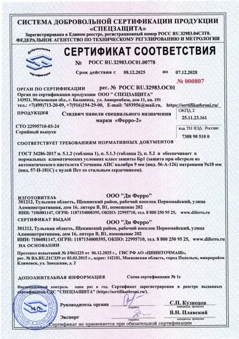 Сертификат соответствия СП специального назначения марки Ферро-2 от 08.12.2025
