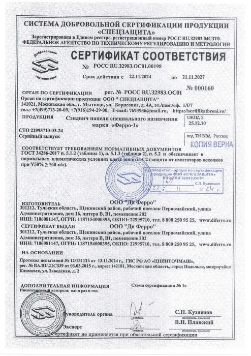 Сертификат соответствия СП специального назначения марки Ферро-1 от 22.11.2024