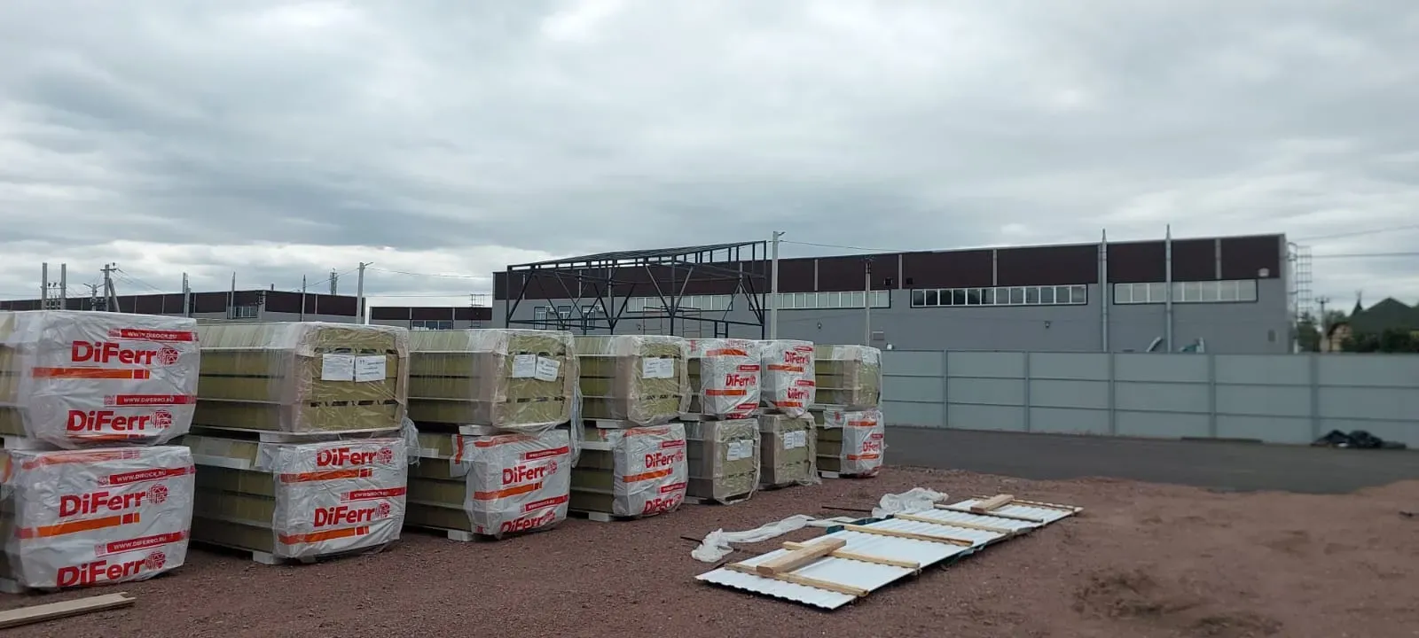 Новое складское здание с административно-бытовыми помещениями в деревне Разметелево